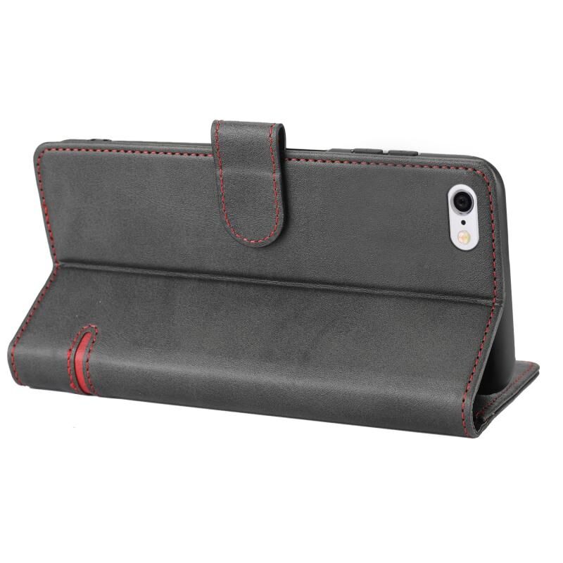 Θήκη τηλεφώνου τύπου πορτοφολιού από δέρμα για iPhone SE 2022 / SE 2020 / 8 / 7 (Μαύρο)