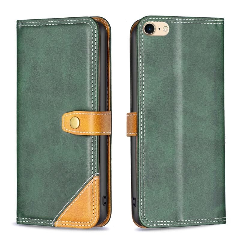 Θήκη δέρματος διπλής ραφής, χρωματικής αντιστοίχισης για iPhone SE 2022 / SE 2020 / 8 / 7 (Μαύρο)