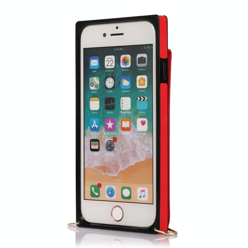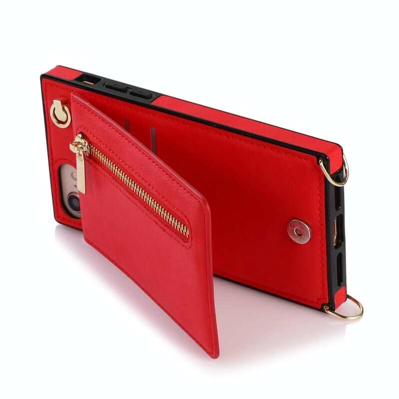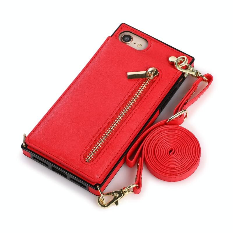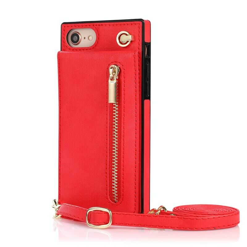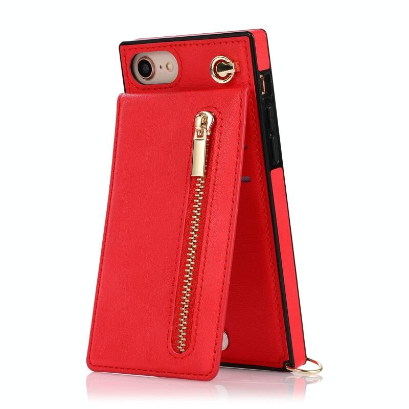 For iPhone SE 2022 / SE 2020 / 8 / 7 Cross-body Zipper Square TPU+PU Back Cover Case with Holder & Card Slots & Wallet & Strap(Red)