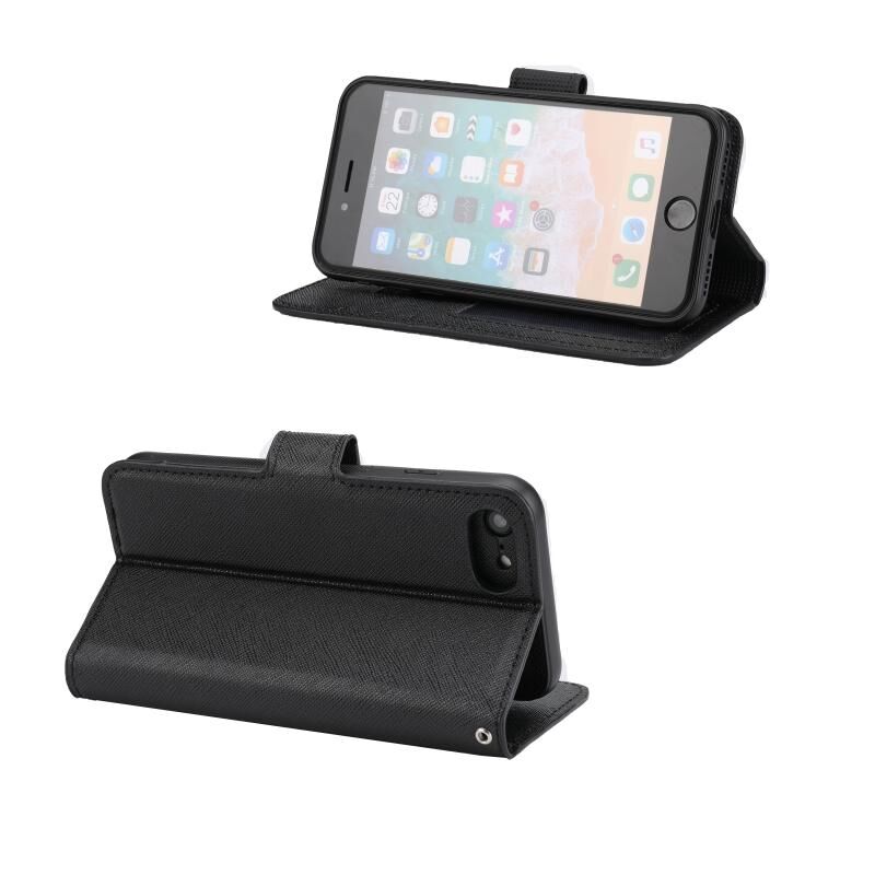 Θήκη τηλεφώνου από αποσπώμενο δέρμα με διασταυρούμενη υφή για iPhone SE 2022 / SE 2020 / 8 / 7 (Μαύρο)