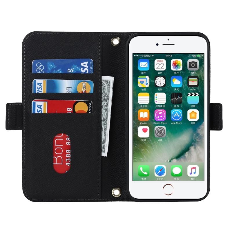 Θήκη τηλεφώνου από δέρμα με υφή σταυρού για iPhone SE 2022 / SE 2020 / 8 / 7 (Μαύρο)
