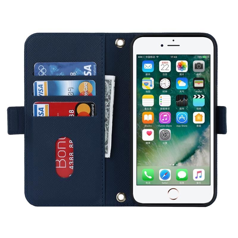 Θήκη τηλεφώνου από δέρμα με υφή σταυρού για iPhone SE 2022 / SE 2020 / 8 / 7 (Μπλε)