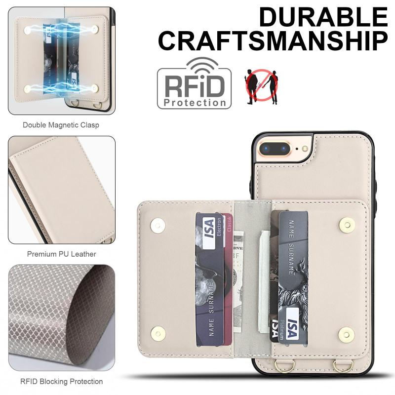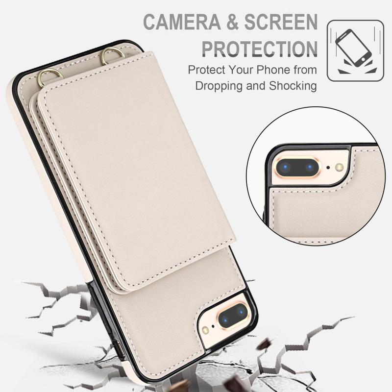 For iPhone SE 2022 / SE 2020 / 8 / 7 Crossbody Dual-buckle Wallet RFID Back Leather Phone Case(White)