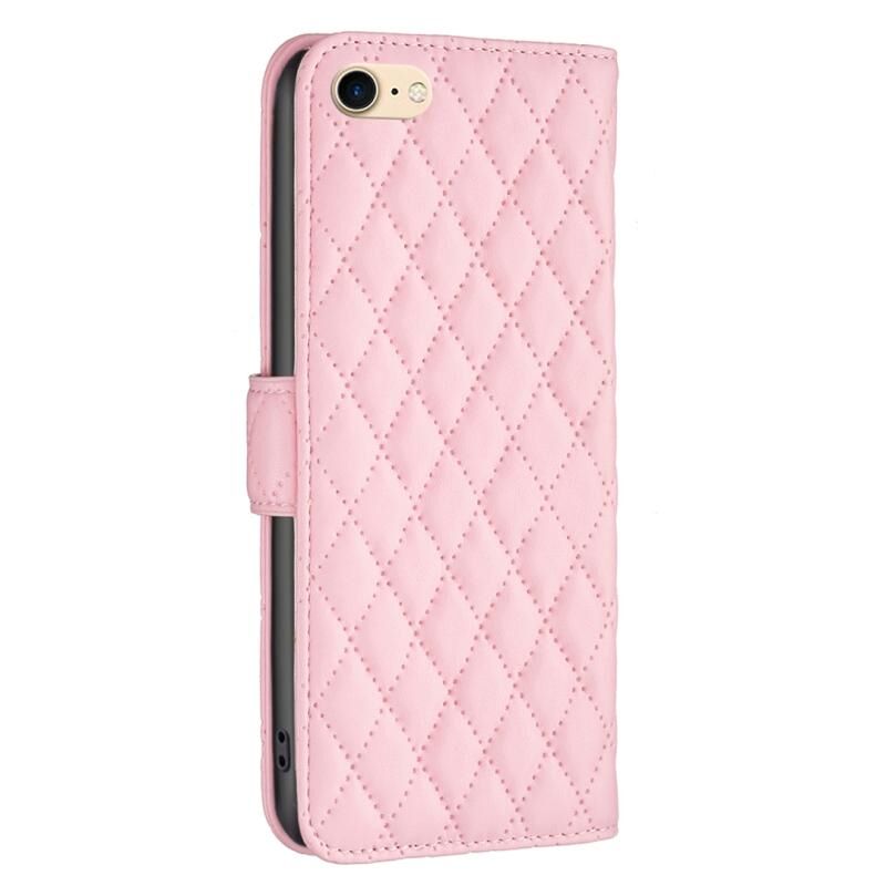 Θήκη τηλεφώνου τύπου πορτοφολιού από δέρμα με σχέδιο διαμαντένιο πλέγμα για iPhone SE 2022 / SE 2020 / 8 / 7 (Μπλε)