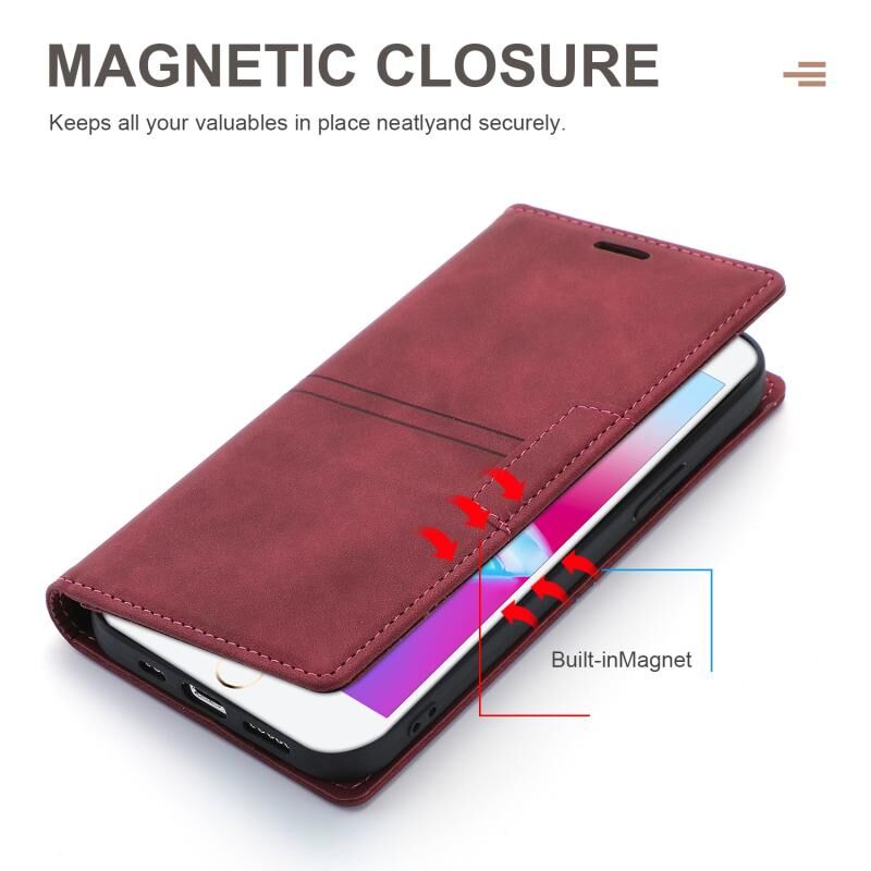 For iPhone SE 2022 / SE 2020 / 8 / 7 Dream Magnetic Suction Business Horizontal Flip PU Leather Case with Holder & Card Slot & Wallet(Wine Red)