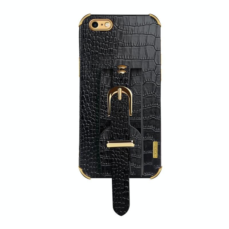For iPhone SE 2022 / SE 2020 / 8 / 7 Electroplated TPU Crocodile Pattern Leather Case with Wrist Strap(Black)