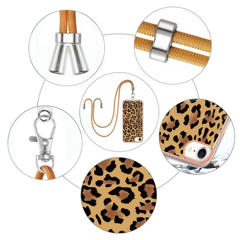 Θήκη iPhone SE 2022 / 2020 / 8 / 7 με Επιμετάλλωση & Λουρί (Σχέδιο Λεοπάρ)