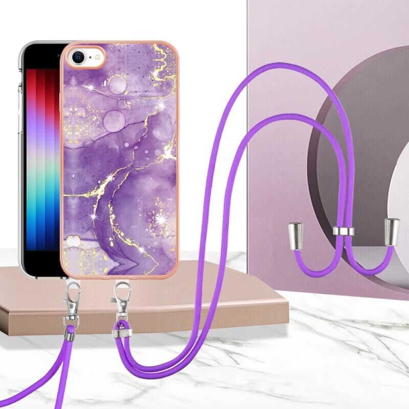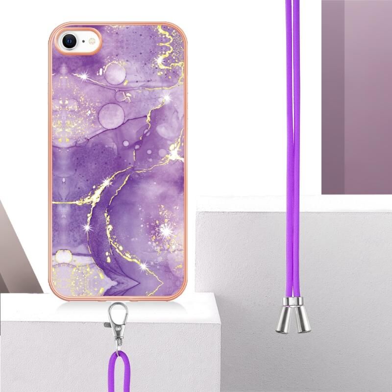 Θήκη τηλεφώνου TPU με σχέδιο μαρμάρου και ηλεκτρολυτική επικάλυψη για iPhone SE 2022 / SE 2020 / 8 / 7 με κορδόνι (Μωβ 001)