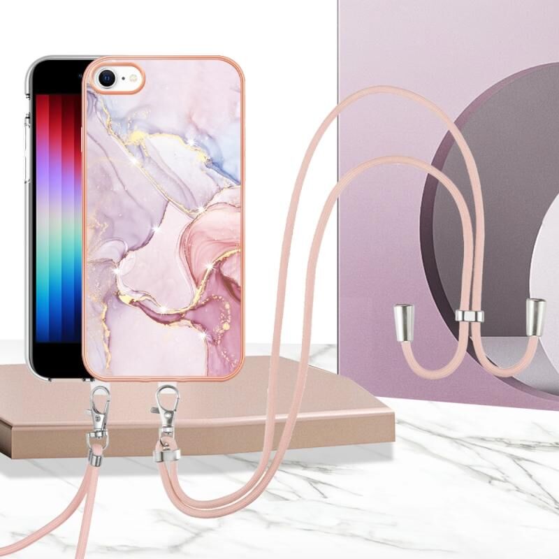Θήκη τηλεφώνου TPU με σχέδιο μαρμάρου και ηλεκτρολυτική επικάλυψη για iPhone SE 2022 / SE 2020 / 8 / 7 με κορδόνι (Μωβ 001)