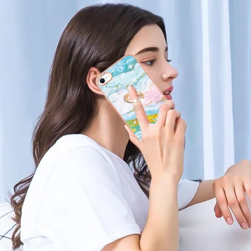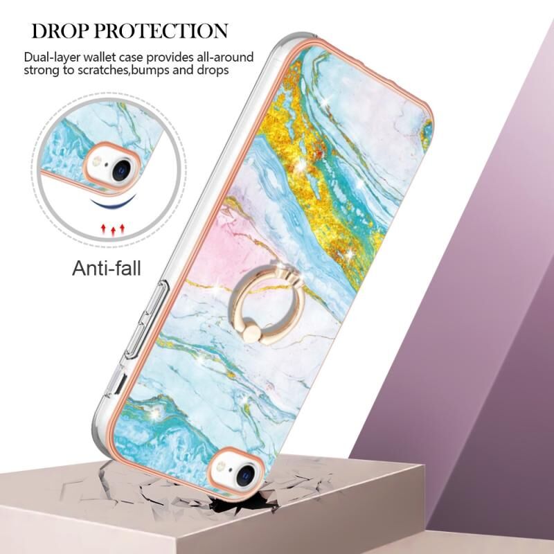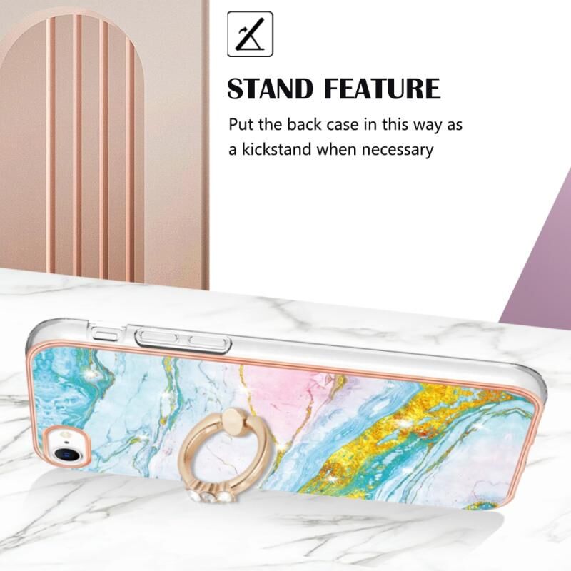Θήκη τηλεφώνου TPU με σχέδιο μαρμάρου και ηλεκτρολυτική επικάλυψη για iPhone SE 2022 / SE 2020 / 8 / 7 με δακτύλιο (Μωβ 001)