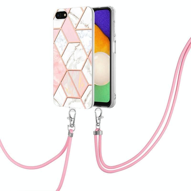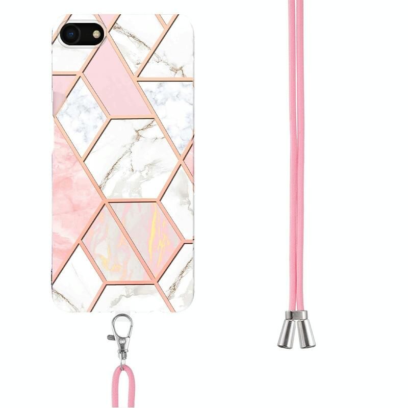 Θήκη τηλεφώνου TPU με γαλβανισμό και μαρμάρινη σύνθεση για iPhone SE 2022 / SE 2020 / 8 / 7 με κορδόνι (Σκούρο Μωβ)