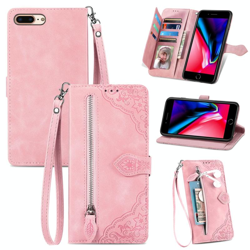 For iPhone SE 2022 / SE 2020 / 8 / 7 Embossed Flower Shockproof Leather Phone Case(Pink)