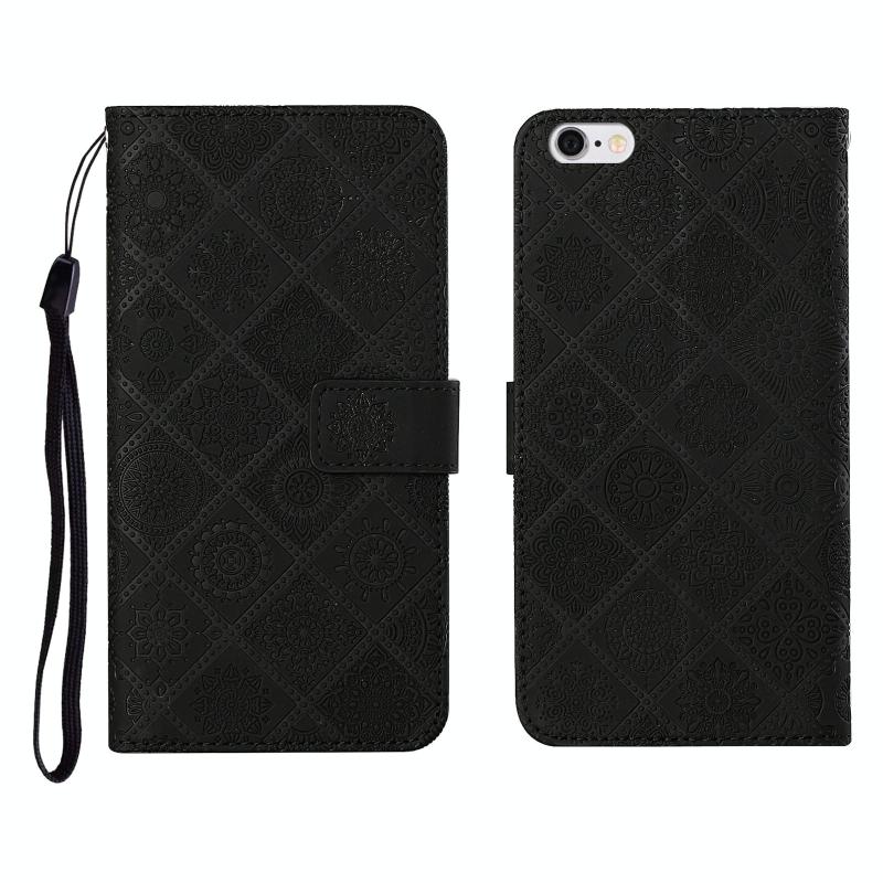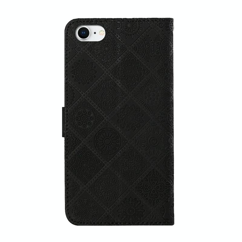 Θήκη δέρματος οριζόντιας αναδίπλωσης με σχέδιο εθνοτικού ανάγλυφου για iPhone SE 2022 / SE 2020 / 8 / 7 με βάση & υποδοχές καρτών & πορτοφόλι & κορδόνι (Μαύρο)
