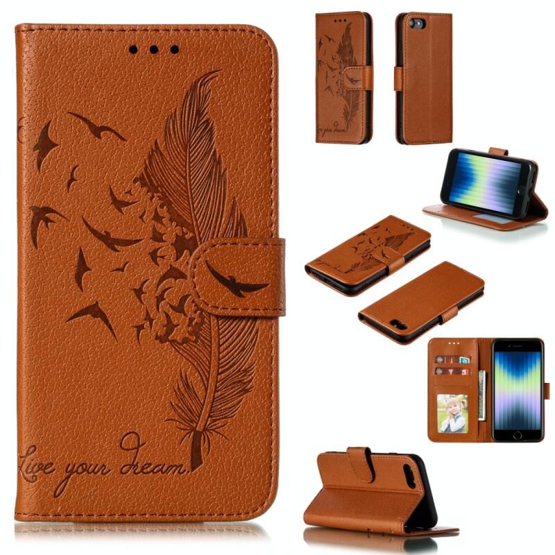 Θήκη ESR δέρμας με σχέδιο φτερού, πορτοφόλι & βάση για iPhone SE 2022/2020/8/7 (Καφέ)