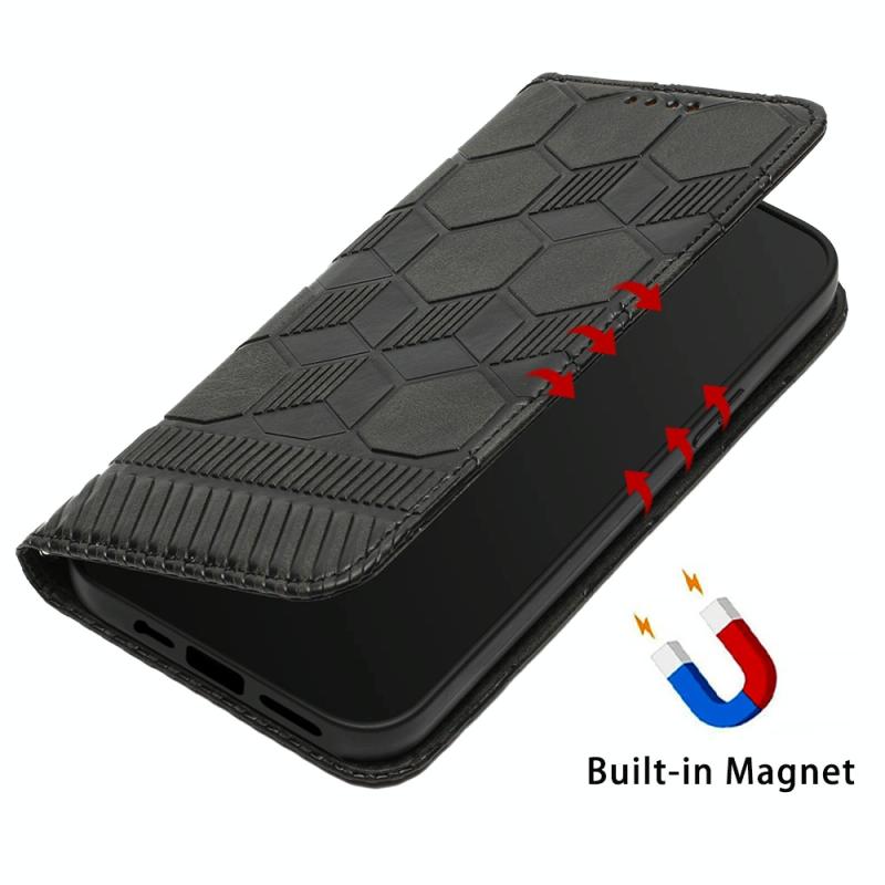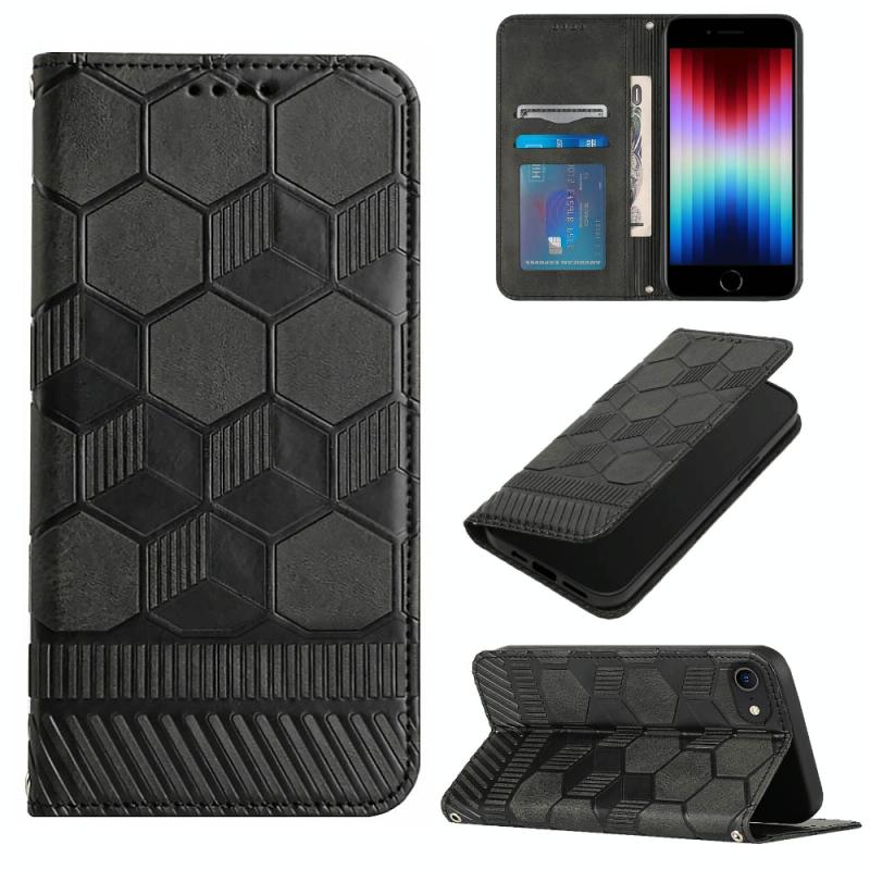 Θήκη Δερμάτινη Μαγνητική Flip με Υφή Ποδοσφαίρου για iPhone SE 2022 / 2020 / 8 / 7 (Μαύρο)