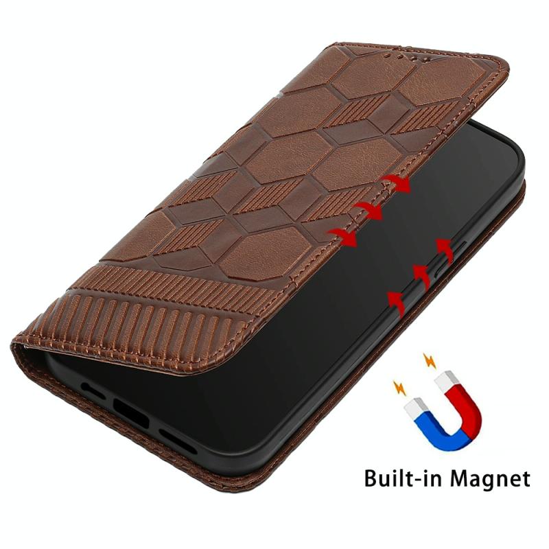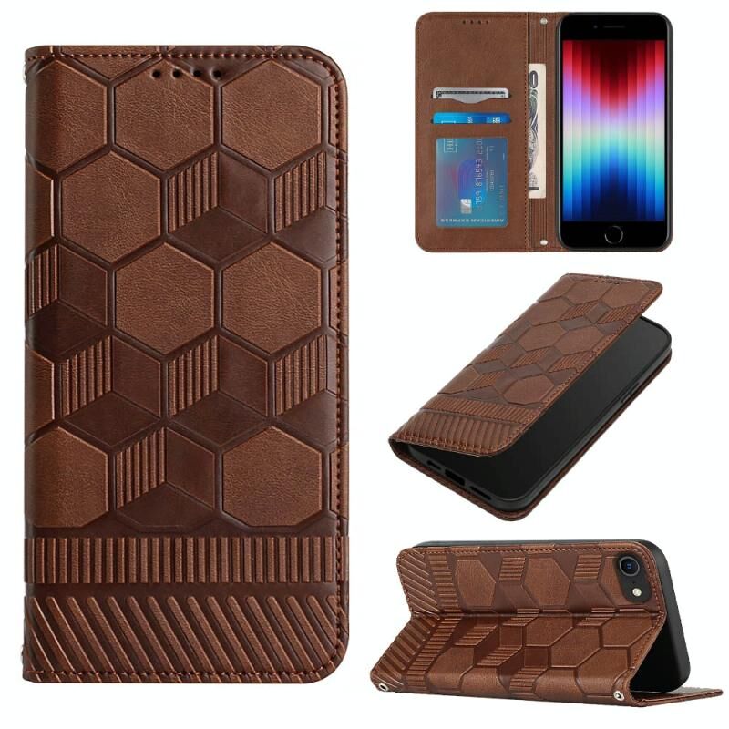 Θήκη Δερμάτινη Μαγνητική Flip με Υφή Ποδοσφαίρου για iPhone SE 2022 / 2020 / 8 / 7 (Καφέ)