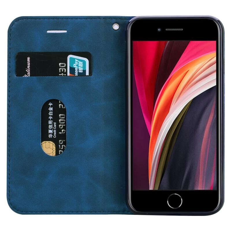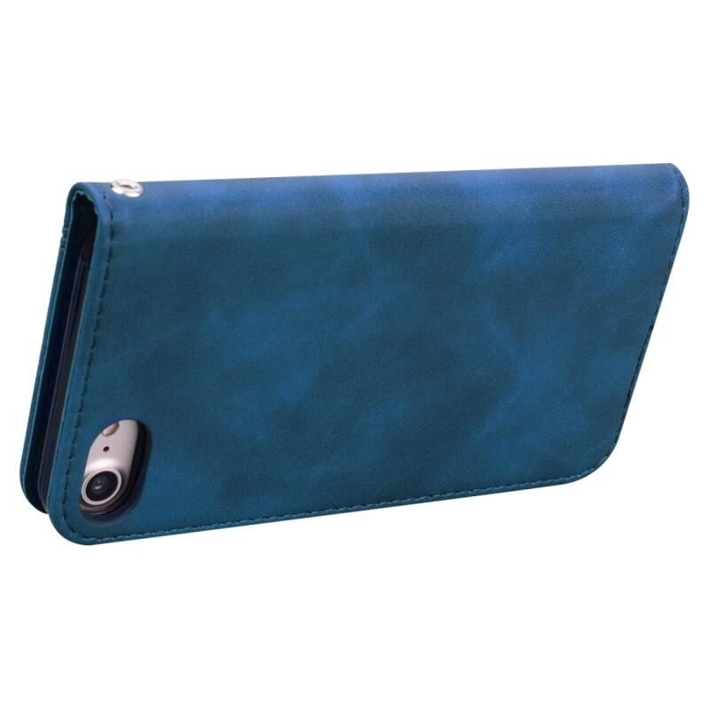 For iPhone SE 2022 / SE 2020 / 8 / 7 Frosted Business Magnetic Horizontal Flip PU Leather Case with Holder & Card Slot & Lanyard(Blue)