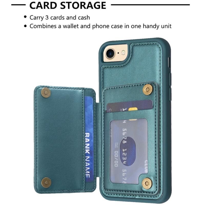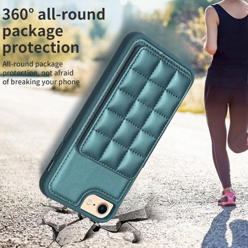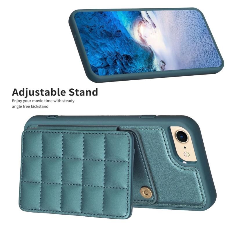 For iPhone SE 2022 / SE 2020 / 8 / 7 Grid Card Slot Holder Phone Case(Green)