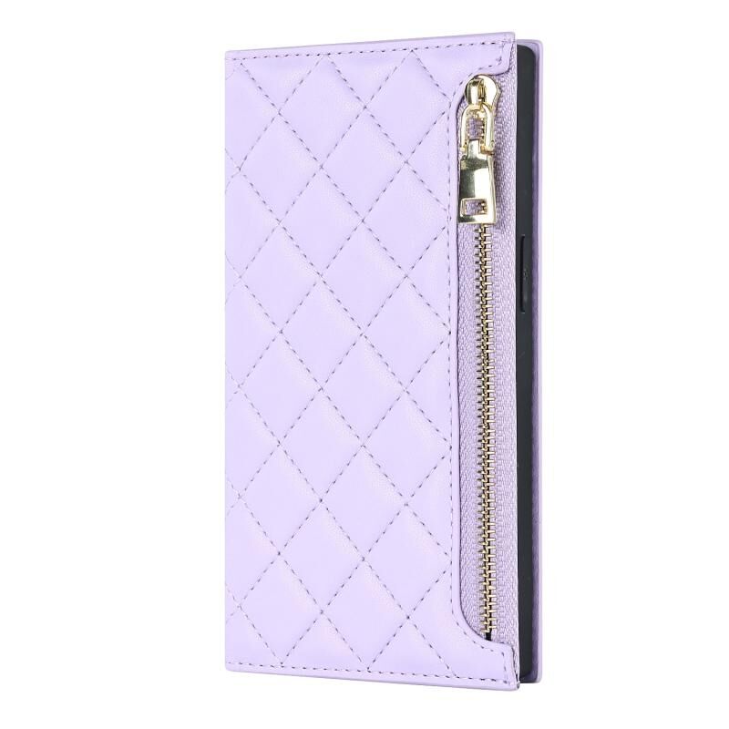 Θήκη τηλεφώνου από δέρμα με φερμουάρ και κορδόνι με υφή πλέγματος για iPhone SE 2022 / SE 2020 / 8 / 7 (Μωβ)