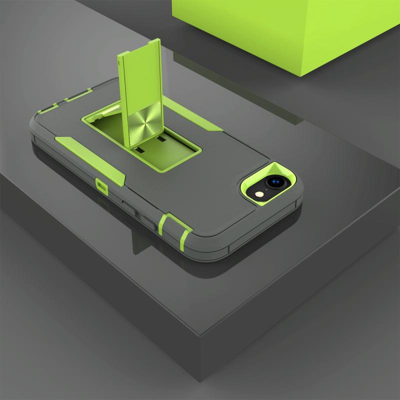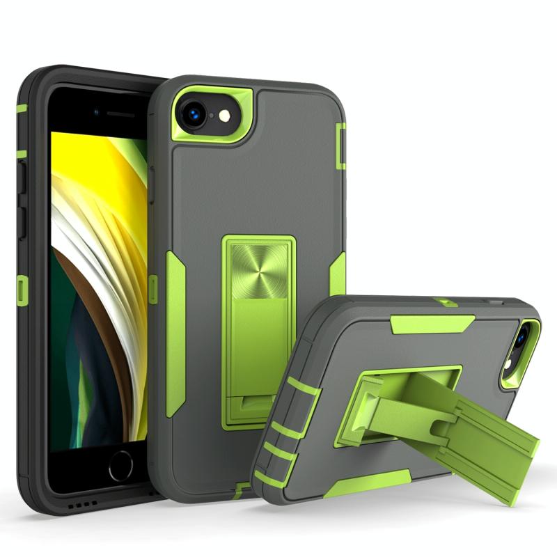 For iPhone SE 2022 / SE 2020 / 8 / 7 Magnetic Holder Phone Case(Dark Grey + Green)