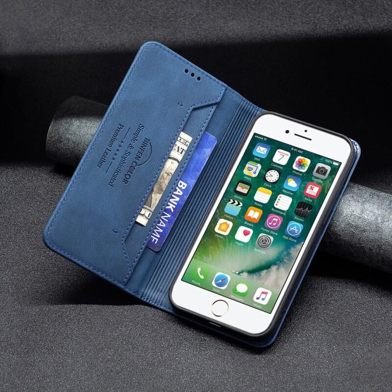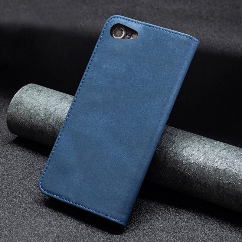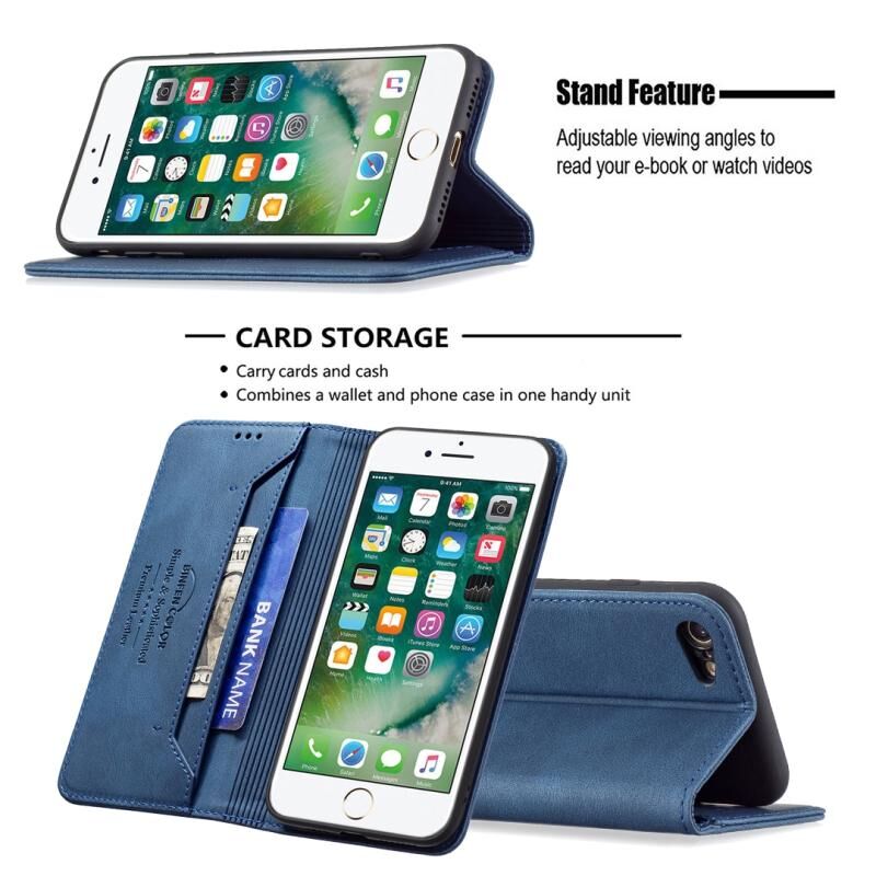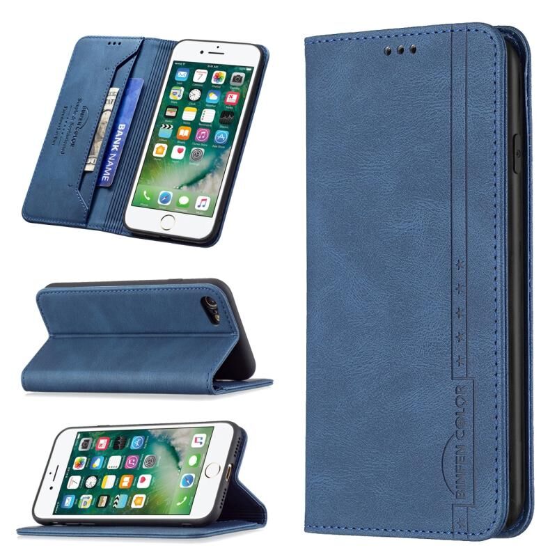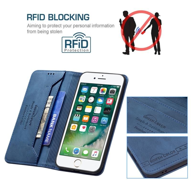 For iPhone SE 2022 / SE 2020 / 8 / 7 Magnetic RFID Blocking Anti-Theft Leather Case with Holder & Card Slots & Wallet(Blue)