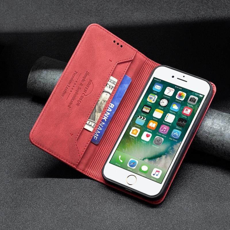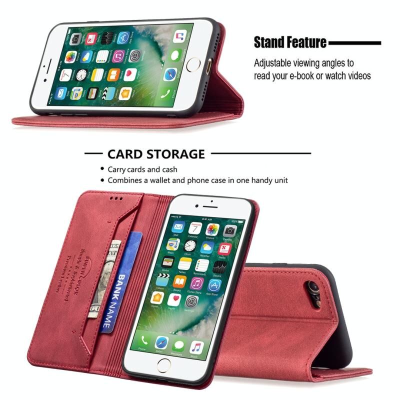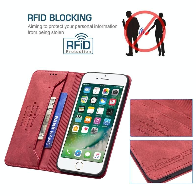 For iPhone SE 2022 / SE 2020 / 8 / 7 Magnetic RFID Blocking Anti-Theft Leather Case with Holder & Card Slots & Wallet(Red)
