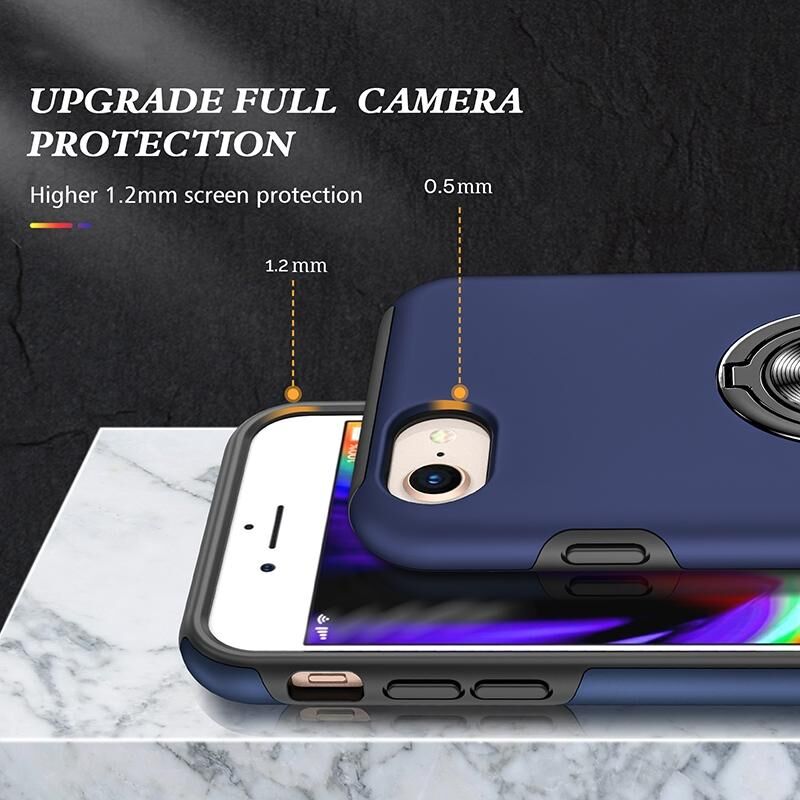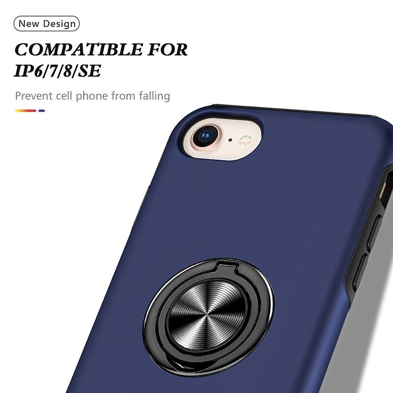 Θήκη κινητού τηλεφώνου με μαγνητικό δακτύλιο στήριξης και αντικραδασμική προστασία για iPhone SE 2022 / SE 2020 / 8 / 7 (Μαύρο)
