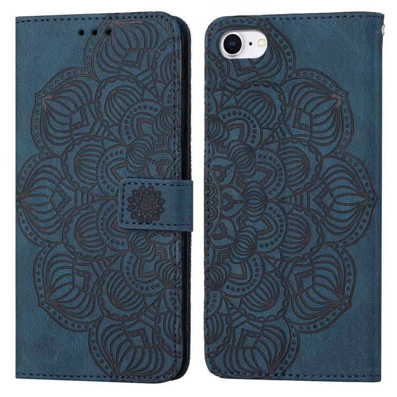 Θήκη τηλεφώνου από δέρμα με ανάγλυφο Mandala για iPhone SE 2022 / SE 2020 / 8 / 7 (Μπλε)