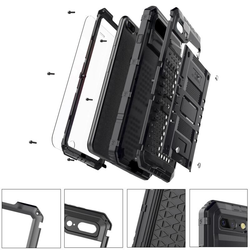 Θήκη τηλεφώνου από μέταλλο + σιλικόνη για iPhone SE 2022 / SE 2020 / 8 / 7 με προστασία οθόνης (Μαύρο)