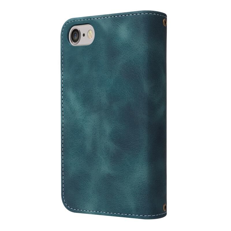 Θήκη τηλεφώνου από δέρμα με πολλαπλές λειτουργίες, θήκη καρτών και φερμουάρ για iPhone SE 2022 / SE 2020 / 8 / 7 (Μπλε)
