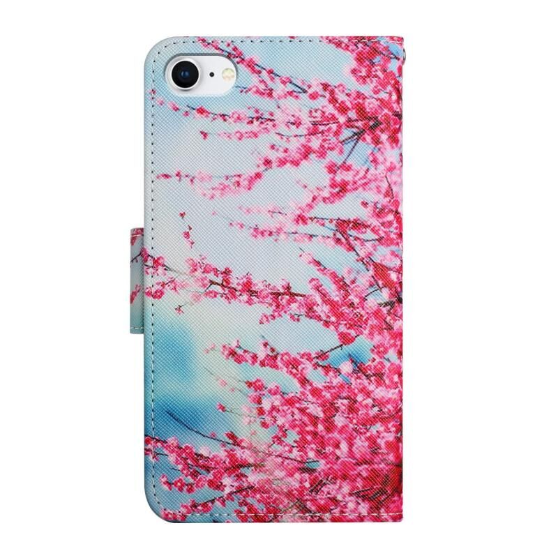 Θήκη δέρματος οριζόντιας αναδίπλωσης με σχέδιο ζωγραφικής για iPhone SE 2022 / SE 2020 / 8 / 7 με βάση & θήκη καρτών & πορτοφόλι (Μωβ Πεταλούδα)
