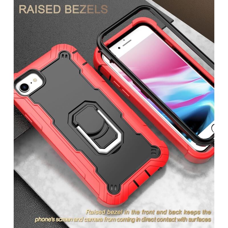 Θήκη προστασίας 3 στρωμάτων PC + Λάστιχο, ανθεκτική σε κρούσεις, με περιστρεφόμενη βάση για iPhone SE 2022 / SE 2020 / 8 / 7 (Κόκκινο + Μαύρο)