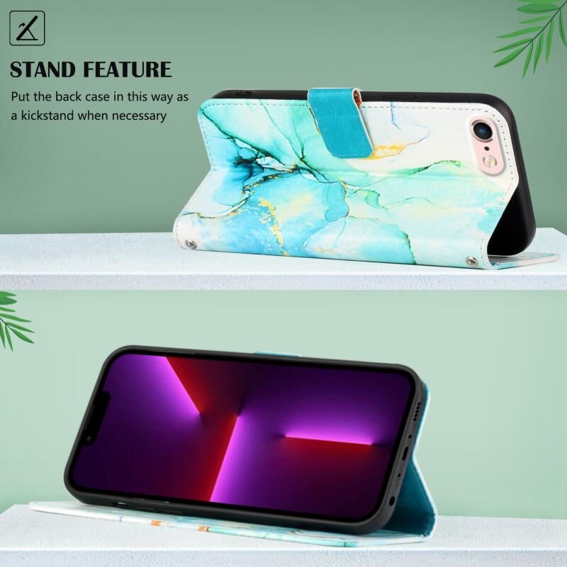 Θήκη τηλεφώνου από δέρμα με σχέδιο μαρμάρου και πτυσσόμενο μηχανισμό για iPhone SE 2022 / SE 2020 / 8 / 7 (PT003)(LS003)