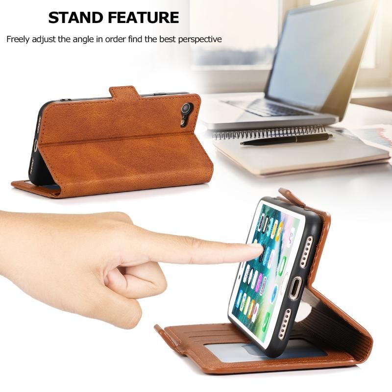 Θήκη δέρματος οριζόντιας αναδίπλωσης με μαγνητικό κούμπωμα για iPhone SE 2022 / SE 2020 / 8 / 7 με βάση & υποδοχές καρτών & κορνίζα φωτογραφιών & πορτοφόλι (Πράσινο)