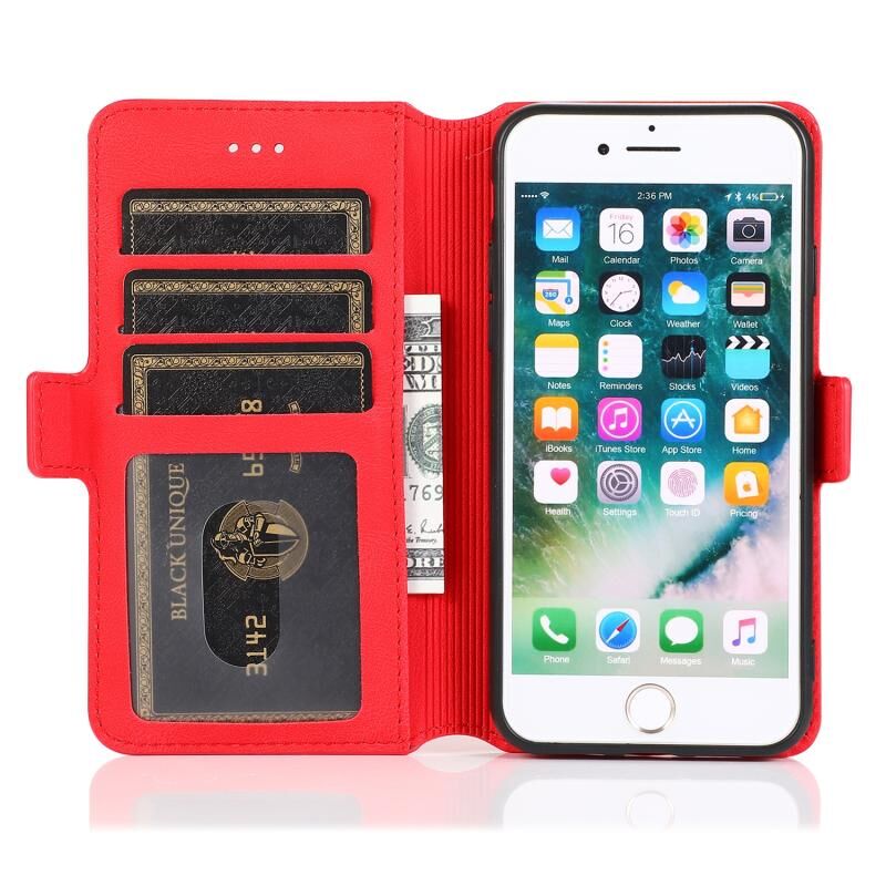 Θήκη δέρματος οριζόντιας αναδίπλωσης με μαγνητικό κούμπωμα για iPhone SE 2022 / SE 2020 / 8 / 7 με βάση & υποδοχές καρτών & κορνίζα φωτογραφιών & πορτοφόλι (Πράσινο)