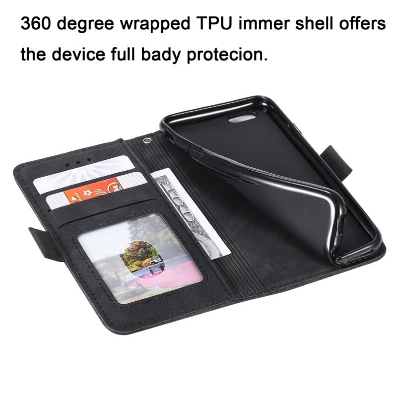 Θήκη δέρματος οριζόντιας αναδίπλωσης με ρετρό συνδυασμό για iPhone SE 2022 / SE 2020 / 8 / 7 με υποδοχές καρτών & βάση & πορτοφόλι (Κόκκινο)