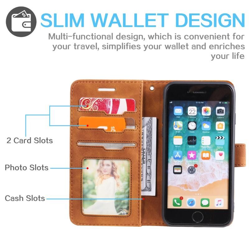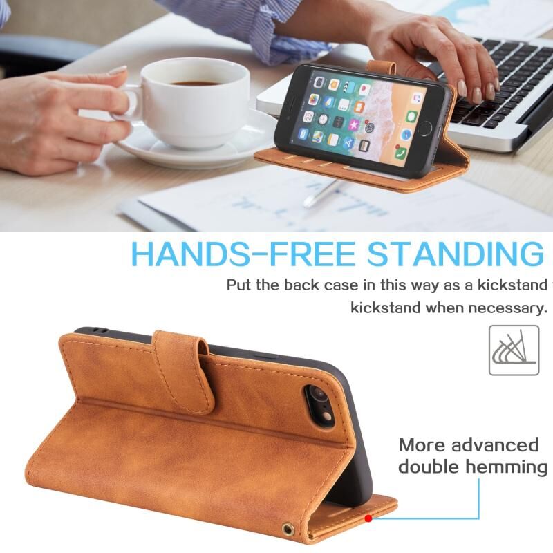Θήκη τηλεφώνου από δέρμα με οριζόντιο άνοιγμα, αντι-κλοπής, με αίσθηση δέρματος για iPhone SE 2022 / SE 2020 / 8 / 7 (Καφέ)
