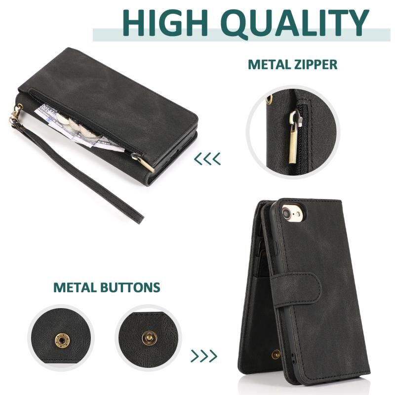 For iPhone SE 2022 / SE 2020 / 8 / 7 Skin-feel Crazy Horse Texture Zipper Wallet Bag Horizontal Flip Leather Case with Holder & Card Slots & Wallet & Lanyard(Black)