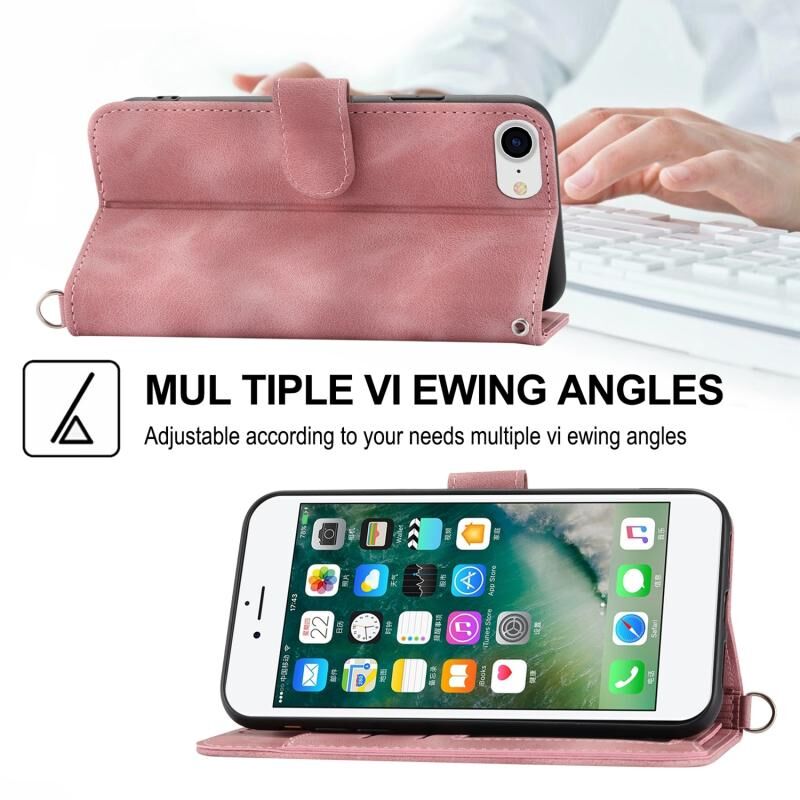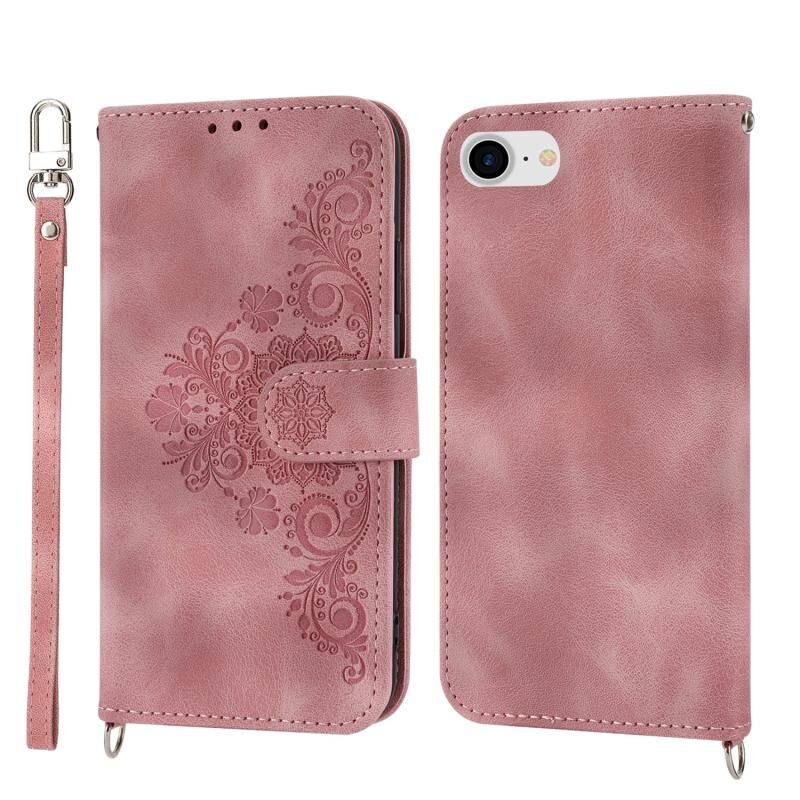 Θήκη τηλεφώνου από δέρμα με ανάγλυφα λουλούδια και υφή δέρματος για iPhone SE 2022 / SE 2020 / 8 / 7 (Μαύρο)