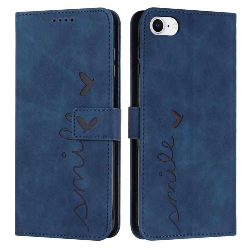 Θήκη Δερμάτινη με Σχέδιο Καρδιάς για iPhone SE 2022/2020/8/7 (Μπλε)