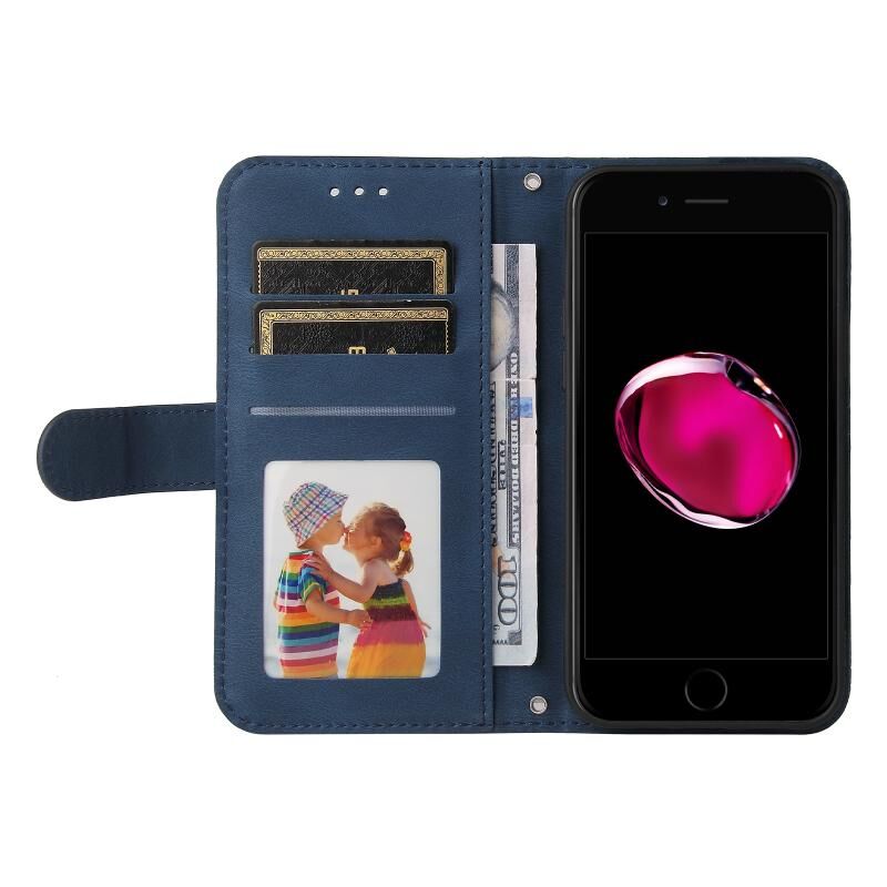 Θήκη δέρματος οριζόντιας αναδίπλωσης για iPhone SE 2022 / SE 2020 / 8 / 7 με αίσθηση δέρματος, σχέδιο Δέντρο της Ζωής, μεταλλικά κουμπιά, θήκη με βάση, θήκη για κάρτες, πορτοφόλι, κορνίζα φωτογραφιών & λουρί (Μπλε)