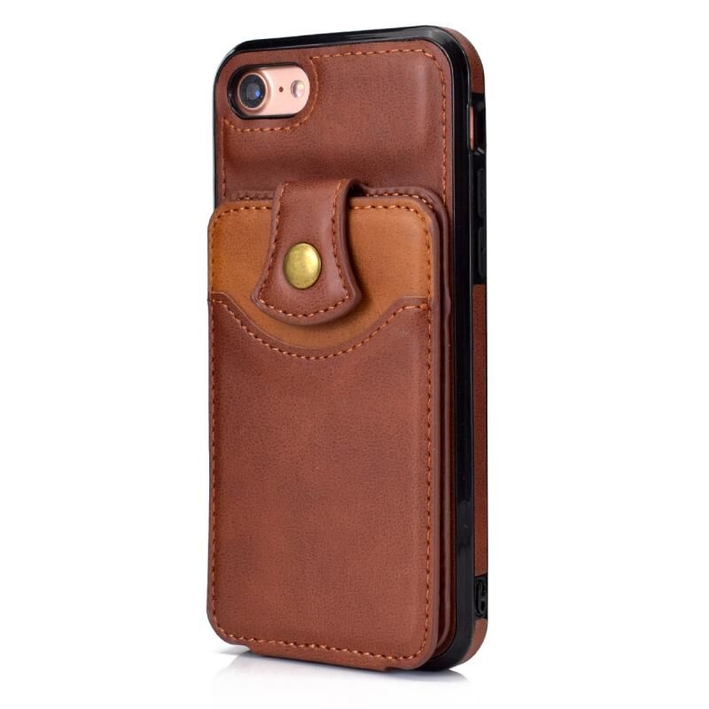 Θήκη τηλεφώνου πορτοφόλι από μαλακό δέρμα για iPhone SE 2022 / SE 2020 / 8 / 7 (Καφέ)