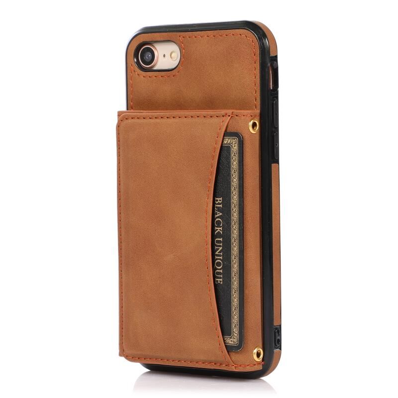 Θήκη Τριπλού Δέρματος για iPhone SE 2022 / SE 2020 / 8 / 7 με Θήκη Κάρτας & Πορτοφόλι & Στήριξη (Καφέ)