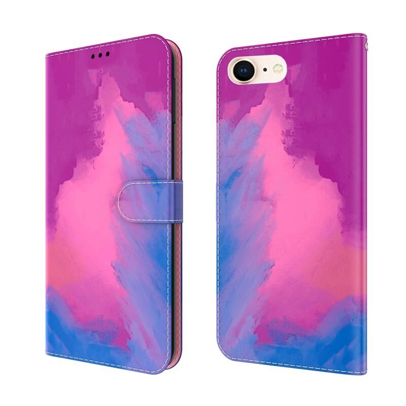Θήκη δέρματος οριζόντιας αναδίπλωσης με σχέδιο ακουαρέλας για iPhone SE 2022 / SE 2020 / 8 / 7 με βάση & υποδοχή κάρτας & πορτοφόλι (Κυανό Πράσινο)