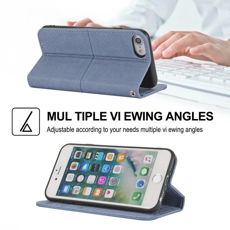 For iPhone SE 2022 / SE 2020 / 8 / 7 Woven Texture Stitching Magnetic Horizontal Flip PU Leather Case with Holder & Card Slots & Wallet & Lanyard(Grey)
