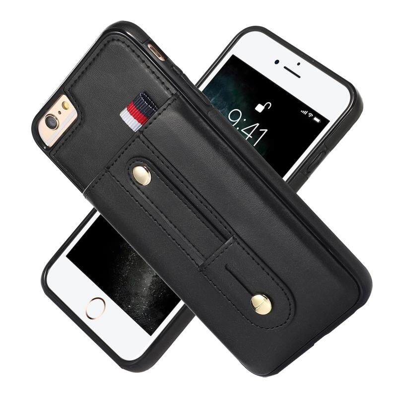 Θήκη τηλεφώνου από δέρμα με βάση στήριξης και θήκη καρτών για iPhone SE 2022 / SE 2020 / 8 / 7 (Μαύρο)