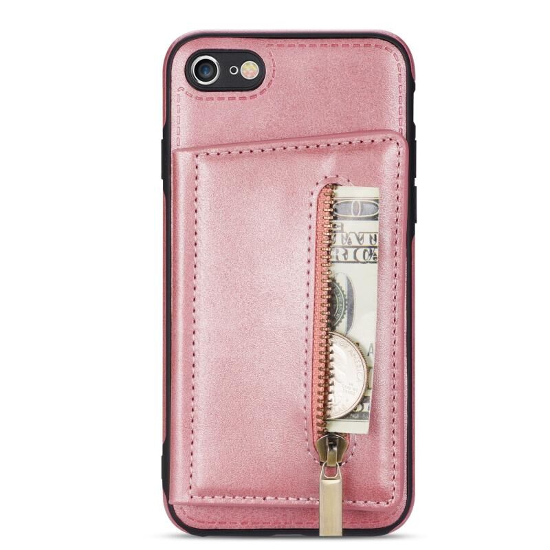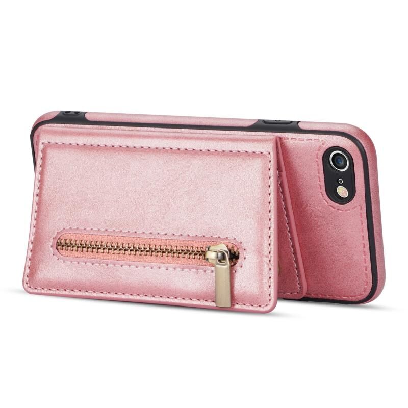 Θήκη κινητού τηλεφώνου με φερμουάρ και θήκη καρτών για iPhone SE 2022 / SE 2020 / 8 / 7 (Μαύρο)
