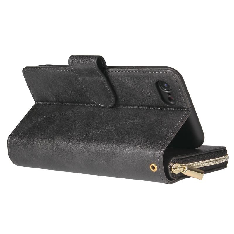 Για iPhone SE 2022 / SE 2020 / 8 / 7 Θήκη πορτοφολιού με φερμουάρ, οριζόντια, από δερματίνη PU με βάση & 9 υποδοχές καρτών & πορτοφόλι & λουρί & κορνίζα φωτογραφίας (Χρυσό ροζ)