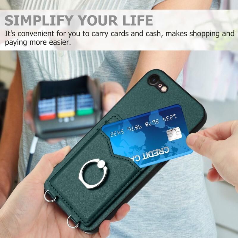 Θήκη τηλεφώνου με κορδόνι λαιμού και θήκη καρτών για iPhone SE 2022 / SE 2020 / 8 (πράσινο)