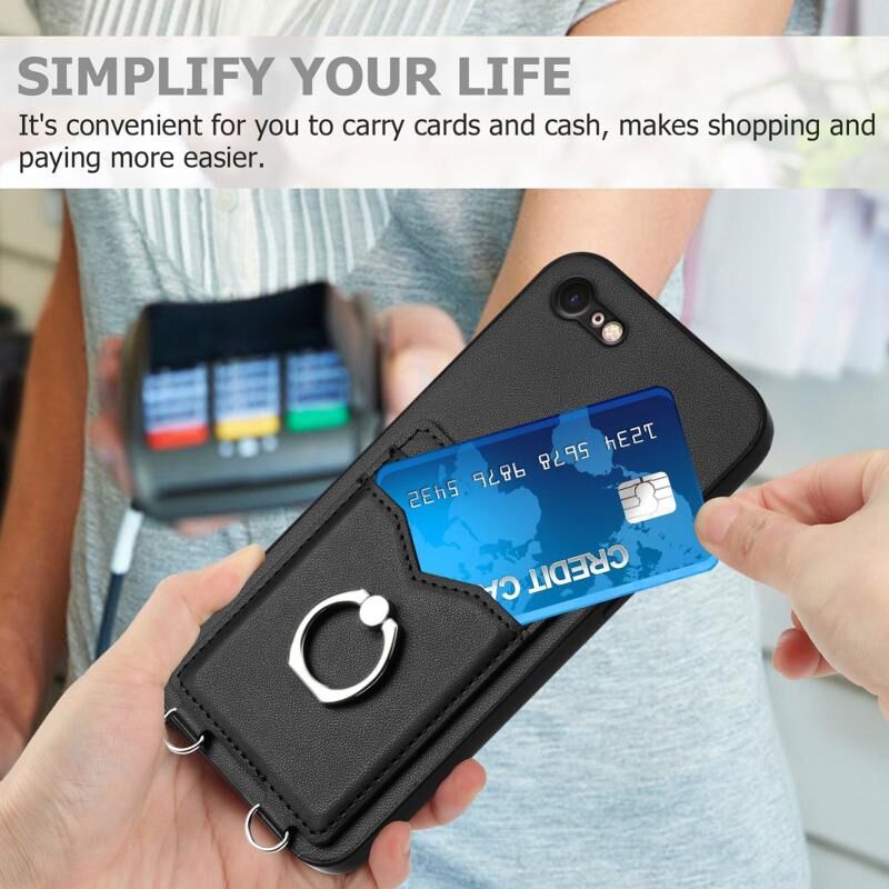 For iPhone SE 2022 / SE 2020 / 8 R20 Ring Card Holder Phone Case(Black)